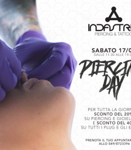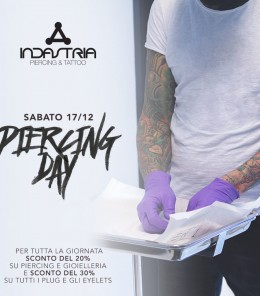Per chiudere l’anno in bellezza Sabato 17 Dicembre PIERCING DAY! Per tutta la giornata passa in studio e approfitta degli sconti. 20% su tutta la gioielleria per piercing e cambi!!! 30% sull’acquisto di Plugs e Eyelets !!! JOIN US dalle 11:30 alle 19:00